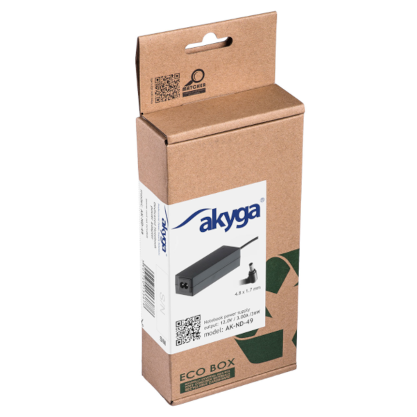 Akyga AK-ND-49 je spolehlivý 36W napájecí adaptér určený pro zařízení vyžadující napětí 12 V a konektor 4.8 × 1.7 mm. Adaptér nabízí stabilní výstupní proud 3 A, vysokou účinnost a je vybaven ochranami proti přepětí, přetížení, přehřátí i zkratu. Díky univerzálnímu vstupu 100–240 V jej lze používat doma i na cestách. Je ideální jako náhrada původního napájecího zdroje pro notebooky a další kompatibilní elektroniku.