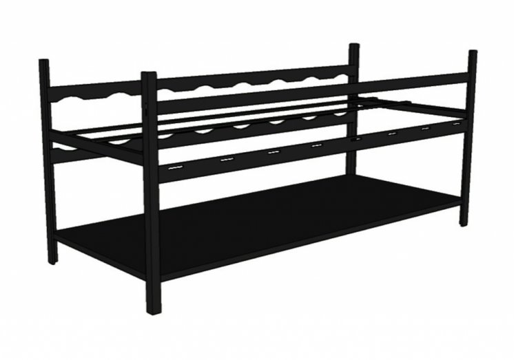 The open air cryptocurrency mining frame made of powder coated steel, designed to hold up to 8 GPUs up to 390 mm long.