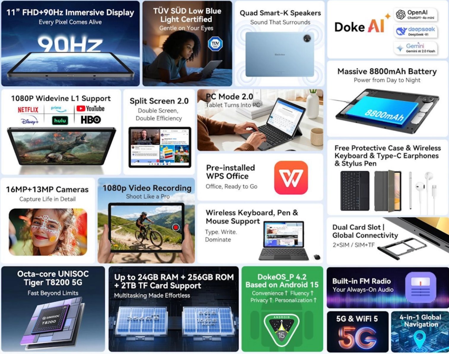 BLACKVIEW Zeno 10 5G SET 8GB/256GB 11",BLUE,IPS 1920x1080,Unisoc T765 Octa 2.3GHz,13MP/16MP camera,8800mAh,Andr 15