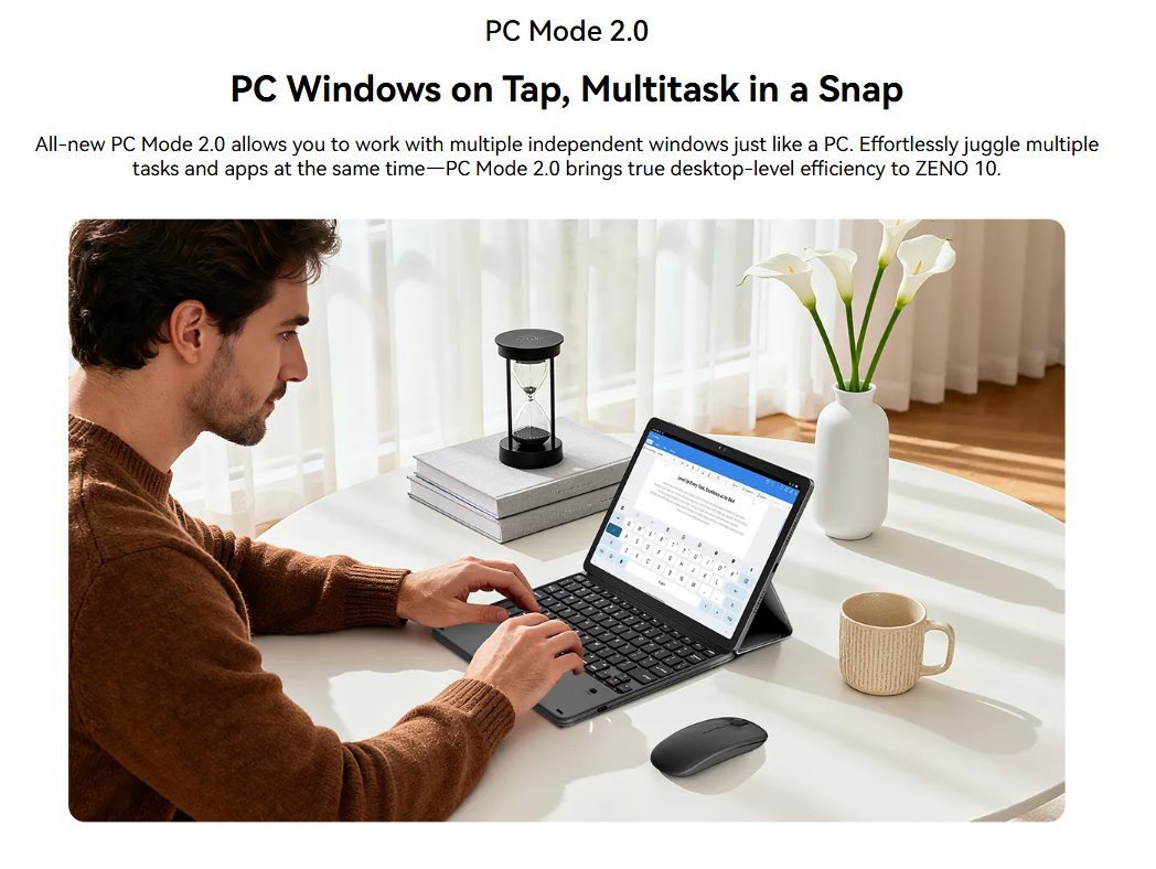 Zeno 10 podporuje mobilní sítě 5G, Wi-Fi i Bluetooth, takže jej lze používat nejen doma, ale i na cestách bez nutnosti připojení k hotspotu. Navigační systémy umožňují přesné určení polohy a využití při cestování nebo práci v terénu.