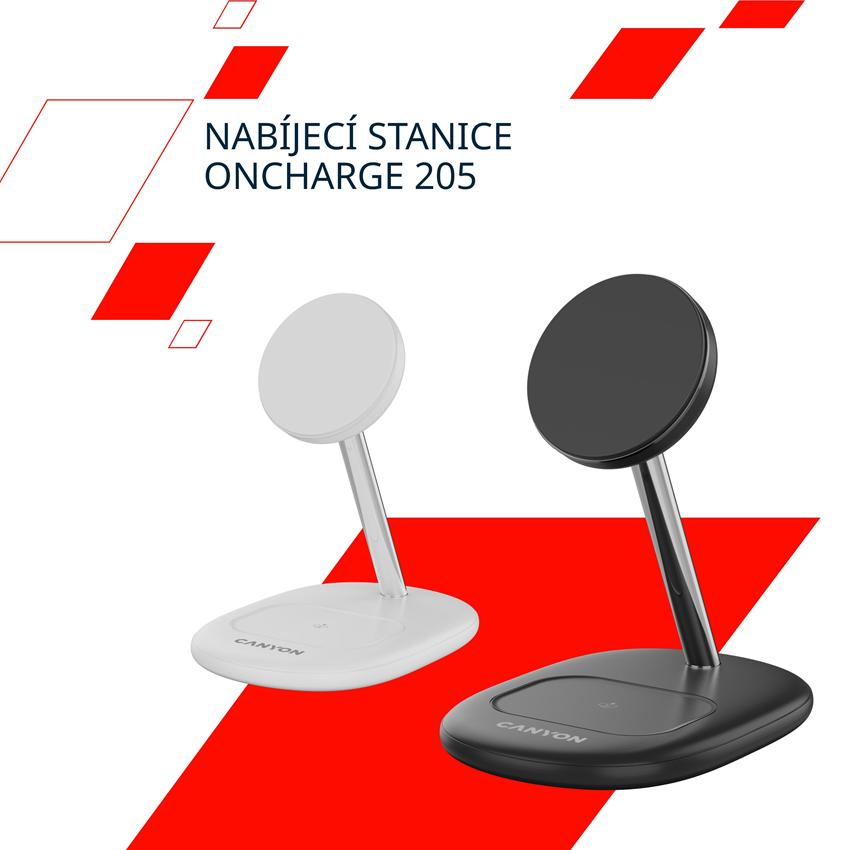 CANYON Bezdrátová nabíječka WCS-205 15W Qi2 2in1 Black