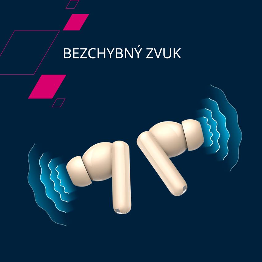 Tato elegantní a ergonomická sluchátka TWS vypadají skvěle v jakékoli barvě: černé, tmavě modré nebo béžové.