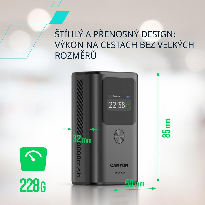 CANYON Power Bank PB-130, 10000mAh PD30W TFT display, dark grey