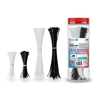 CONNECT IT ZipTie Stahovací pásky na kabely 200ks ČERNÁ/BÍLA