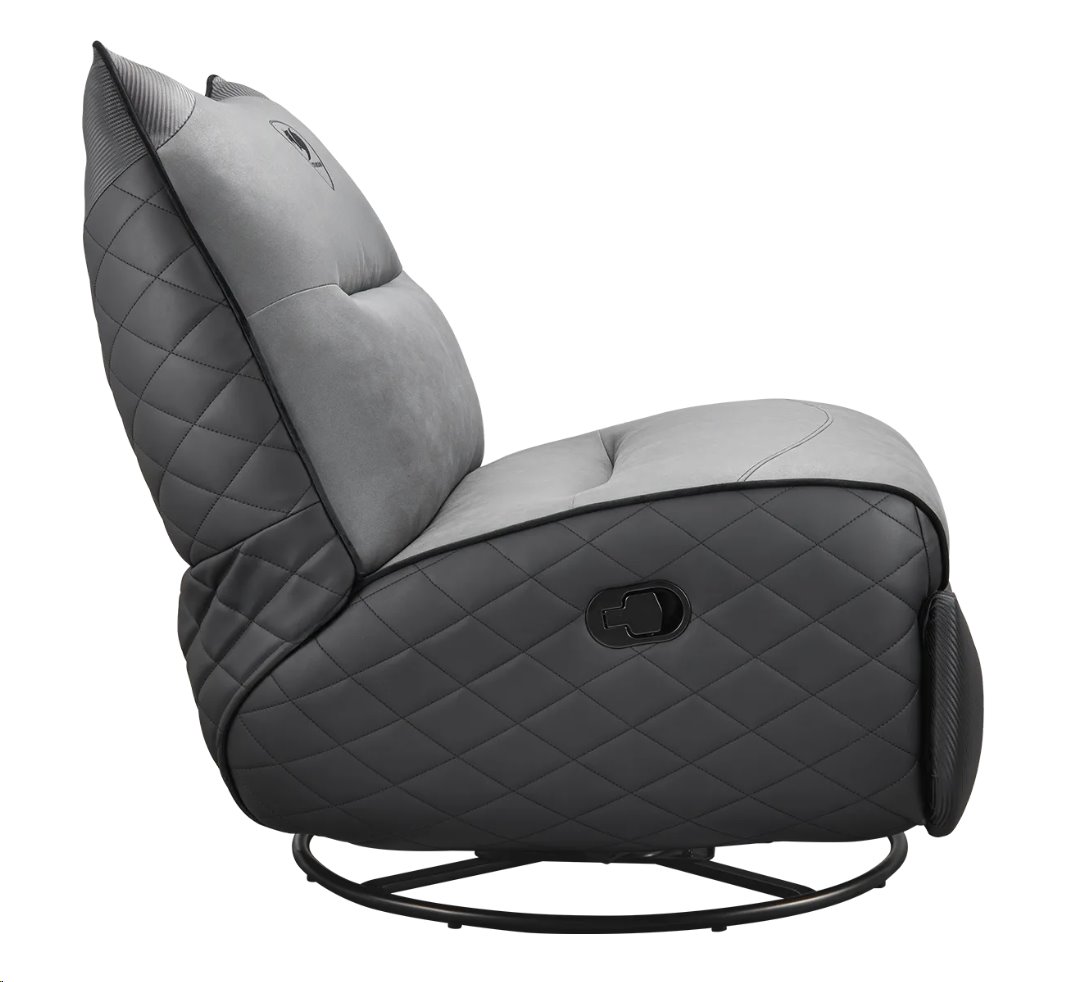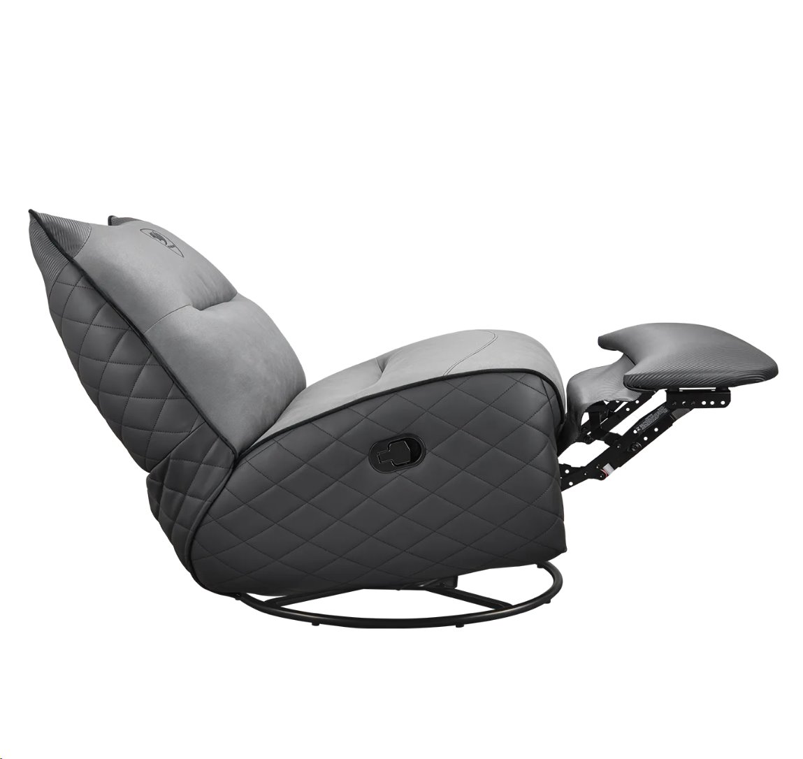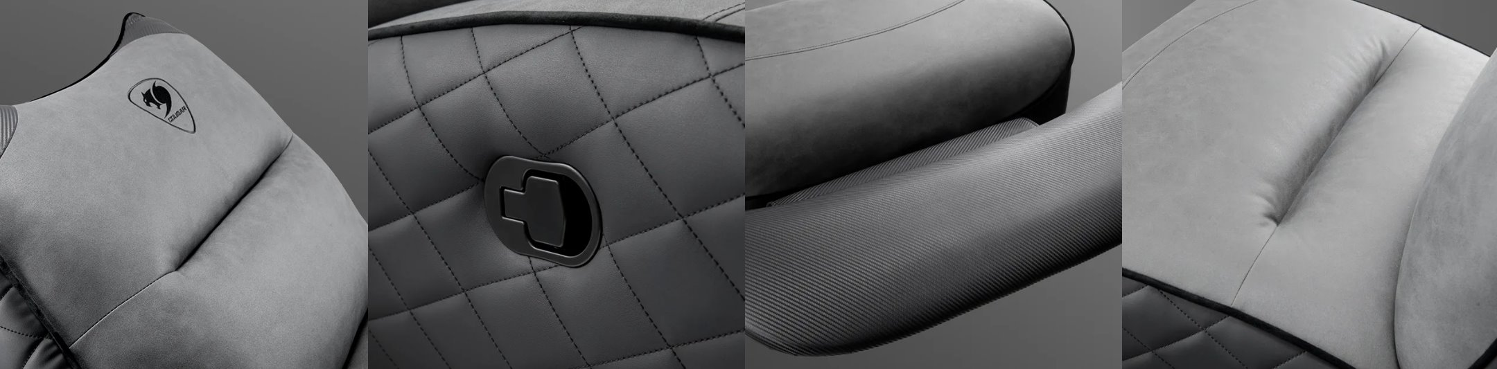Prémiové čalounění: Sedací část je potažena prodyšnou látkou připomínající kůži, která je příjemná na dotek a odolná proti opotřebení. Boky a zadní část využívají vysoce odolnou PVC kůži Hyper-Dura s klasickým diamantovým prošíváním.