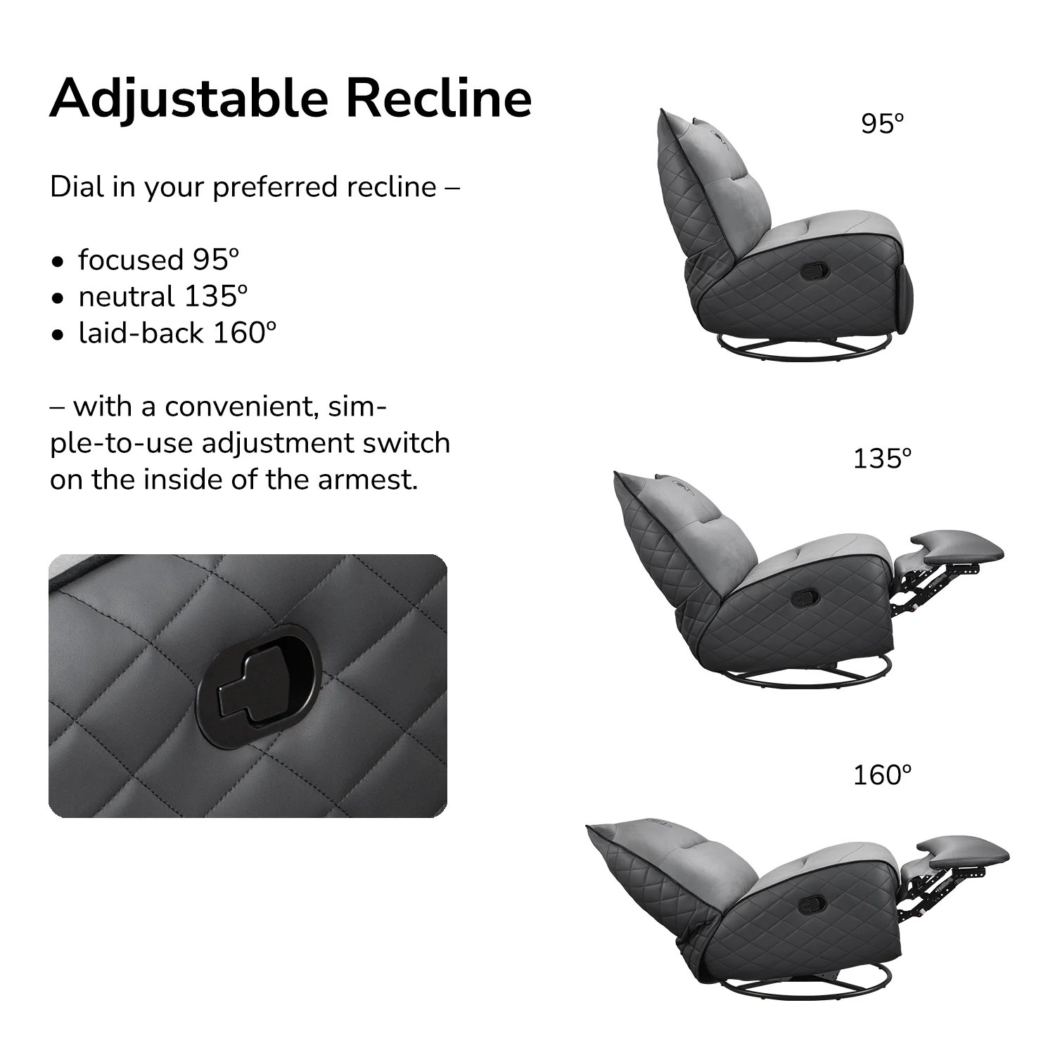 Funkce základny: Otáčení o 360° (Swivel), houpání (Rock) a náklon (Recline).