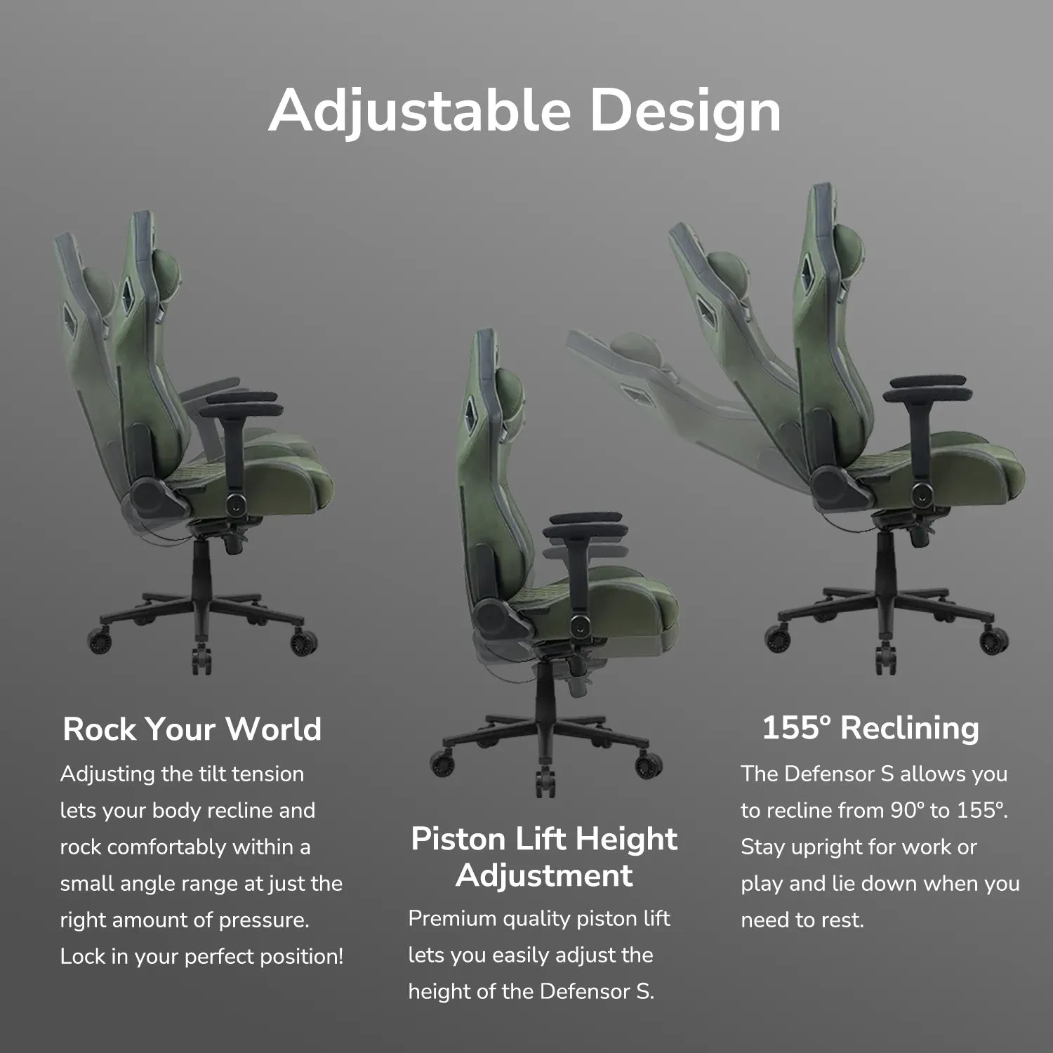 COUGAR herní židle DEFENSOR S F (Tkaná látka) - ARMY GREEN - zelená
