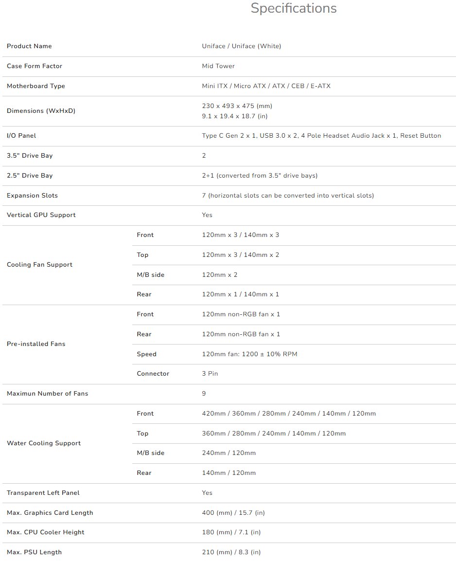 Uniface je vyroben z precizních a odolných materiálů a zaručuje ochranu vašich komponent a spolehlivost, na kterou se můžete spolehnout, a udržuje váš cenný hardware v bezpečí.