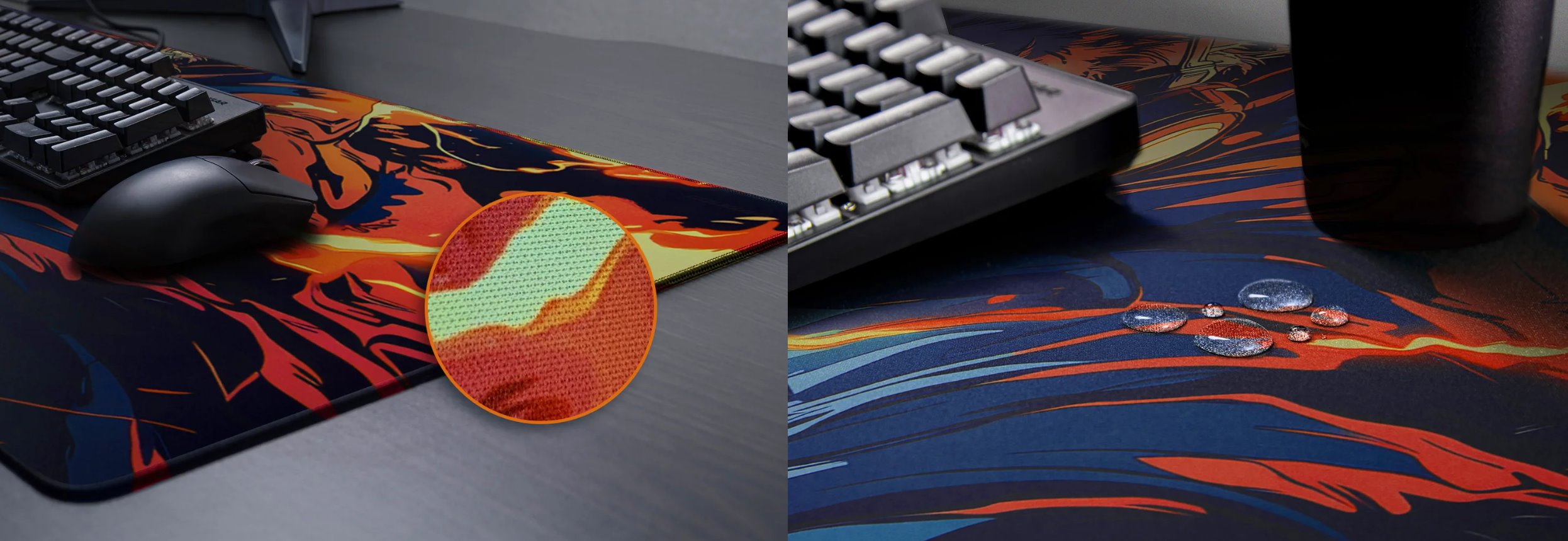 Povrch podložky tvoří jemně tkaná mikrotextilní struktura, která umožňuje rychlé reakce a přesné snímání pohybu senzoru myši. Rovnoměrné tření v osách X i Y zajišťuje konzistentní ovládání bez nečekaného zpomalení.