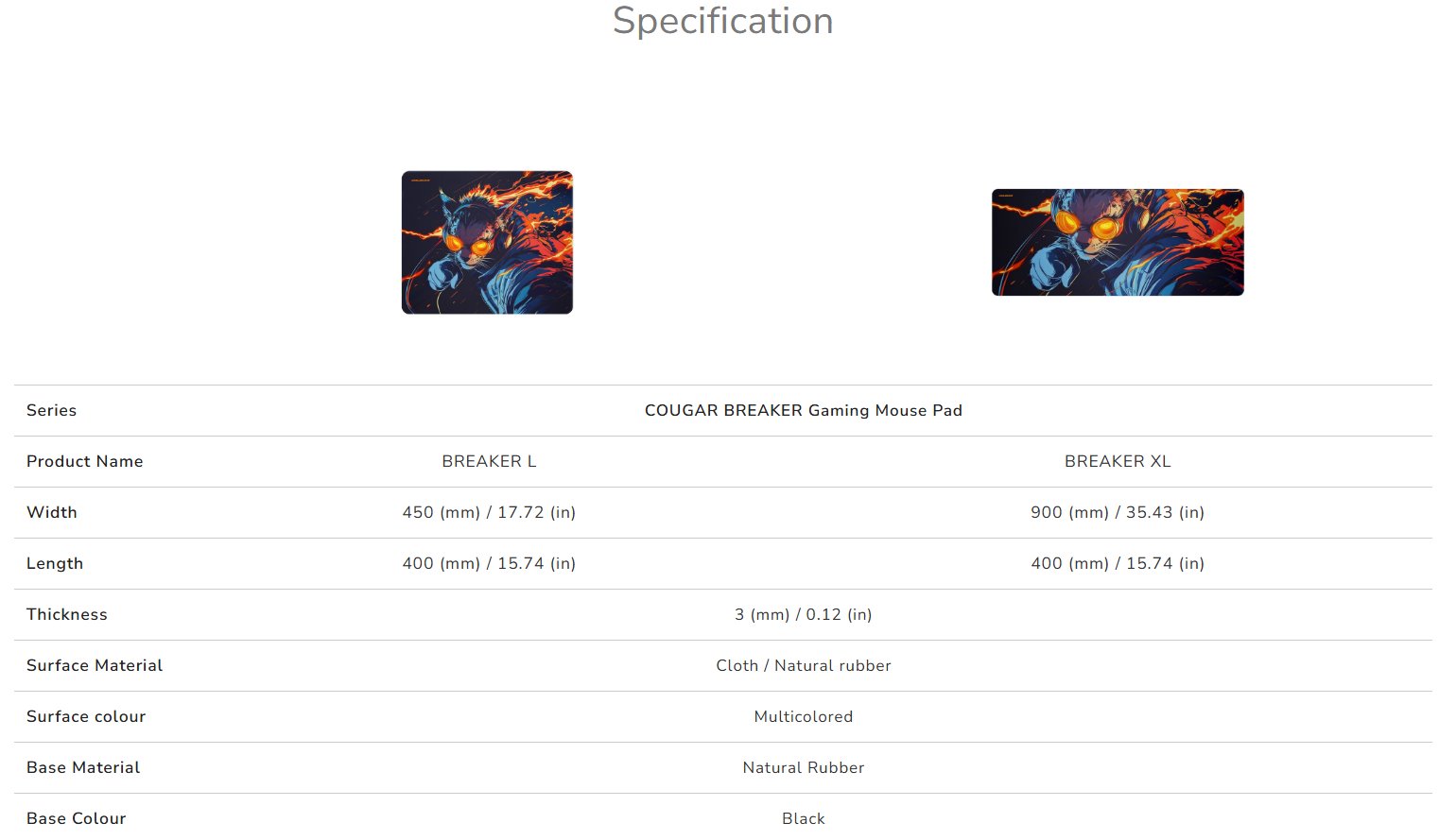 Cougar Breaker je kvalitní gaming podložka, která nabízí rychlý povrch, vysokou odolnost a stabilní základnu. Je ideální volbou pro hráče, kteří chtějí mít kontrolu nad každým pohybem myši.