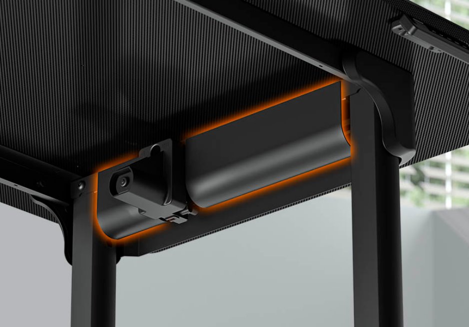 Rozsáhlou pracovní plochu E GRAV podpírají čtyři kulaté nohy v robustní čtvercové konfiguraci, která propojuje elegantní vzhled s mimořádnou stabilitou. Dva motory rovnoměrně rozkládají hmotnost a zajišťují plynulé, tiché a vyvážené zvedání.