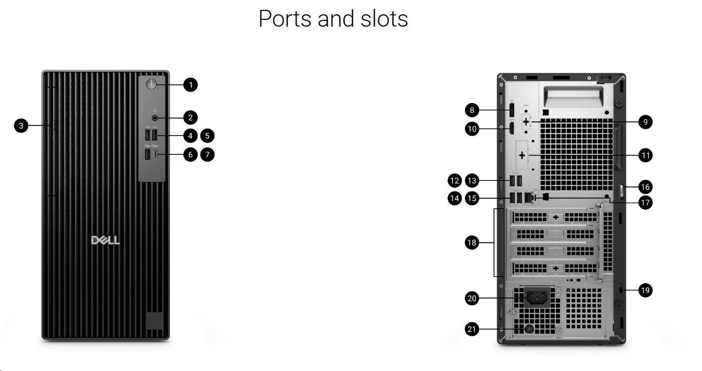 Zařízení běží na operačním systému Windows 11 Pro, který nabízí moderní rozhraní a pokročilou bezpečnost pro firemní prostředí. Tower PC je vybaven bohatou konektivitou včetně USB-A a USB-C portů, HDMI a DisplayPort výstupů, RJ-45 Ethernetu a také klasickou drátovou klávesnicí a myší v balení, což zajišťuje okamžité použití bez nutnosti dalšího příslušenství.