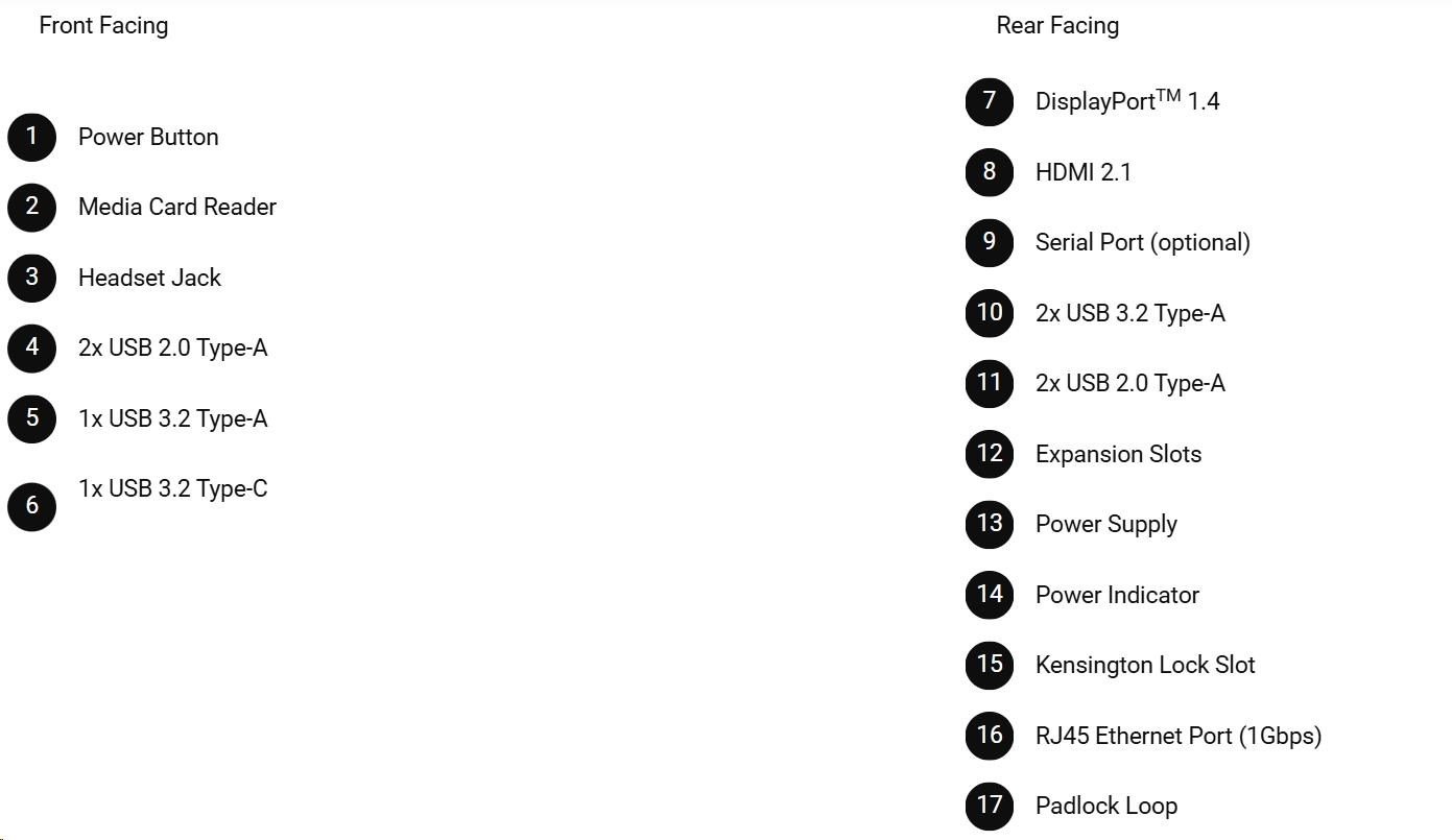 Počítač nabízí široké možnosti připojení včetně USB portů, HDMI a DisplayPort pro připojení monitorů a dalších periferií. Nechybí RJ-45 Ethernet pro stabilní síťové připojení ani bezdrátová konektivita WLAN pro flexibilní práci. Součástí balení je klávesnice a myš, takže zařízení je připraveno k okamžitému použití. Tříletá služba ProSupport NBD poskytuje jistotu rychlé podpory v případě potřeby.