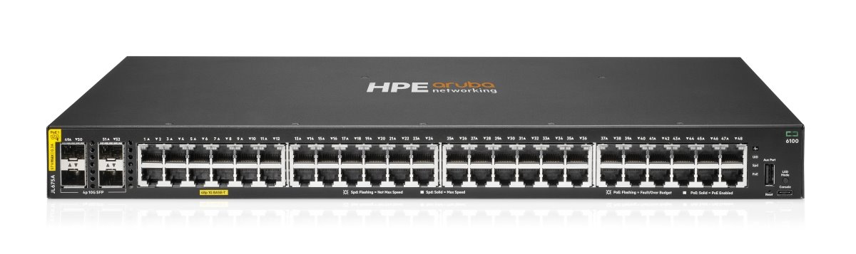 | Datasheet: | HPE Networking CX 6100 48G CL4 PoE 4SFP+ 370W Switch JL675A Datasheet.pdf |