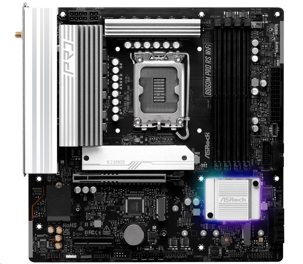 MB Asrock B860M PRO RS WIFI /LGA1851/4xDDR5/M.2/W6E+BT5.3/HDMI/DP/mATX