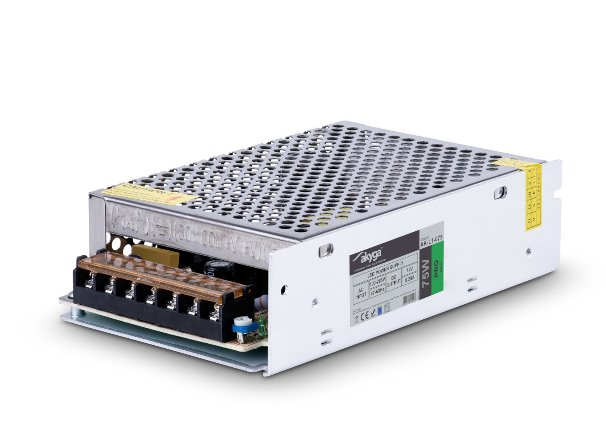 Akyga® AK-L1-075 je 75W napájecí zdroj pro průmyslové automatizační systémy, řízení strojů a osvětlení založené na technologii LED, který se používá při napájení LED pásů, LED žárovek, LED panelů, LED ovladačů RGB a dalších elektronických zařízení poháněných 11 - 15 V DC, který je regulován potenciometrem. Aktuální kapacita 6,25A umožňuje dodat například 14m LED pás s parametry 4,8 W/m. Existuje možnost napájení dvou různých obvodů najednou.